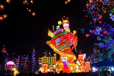 自贡灯会素来以气势壮观、规模宏大著称,以构思巧妙、制作精巧取胜,以灯景交融、层次迷离称奇。本届灯会在继承传统工艺的基础上,将“高科技、新光源、新工艺”融入设计制作,推出了一大批极具观赏性、震撼力和艺术感染力的灯组,凸显了“形色声光动”的艺术特色。